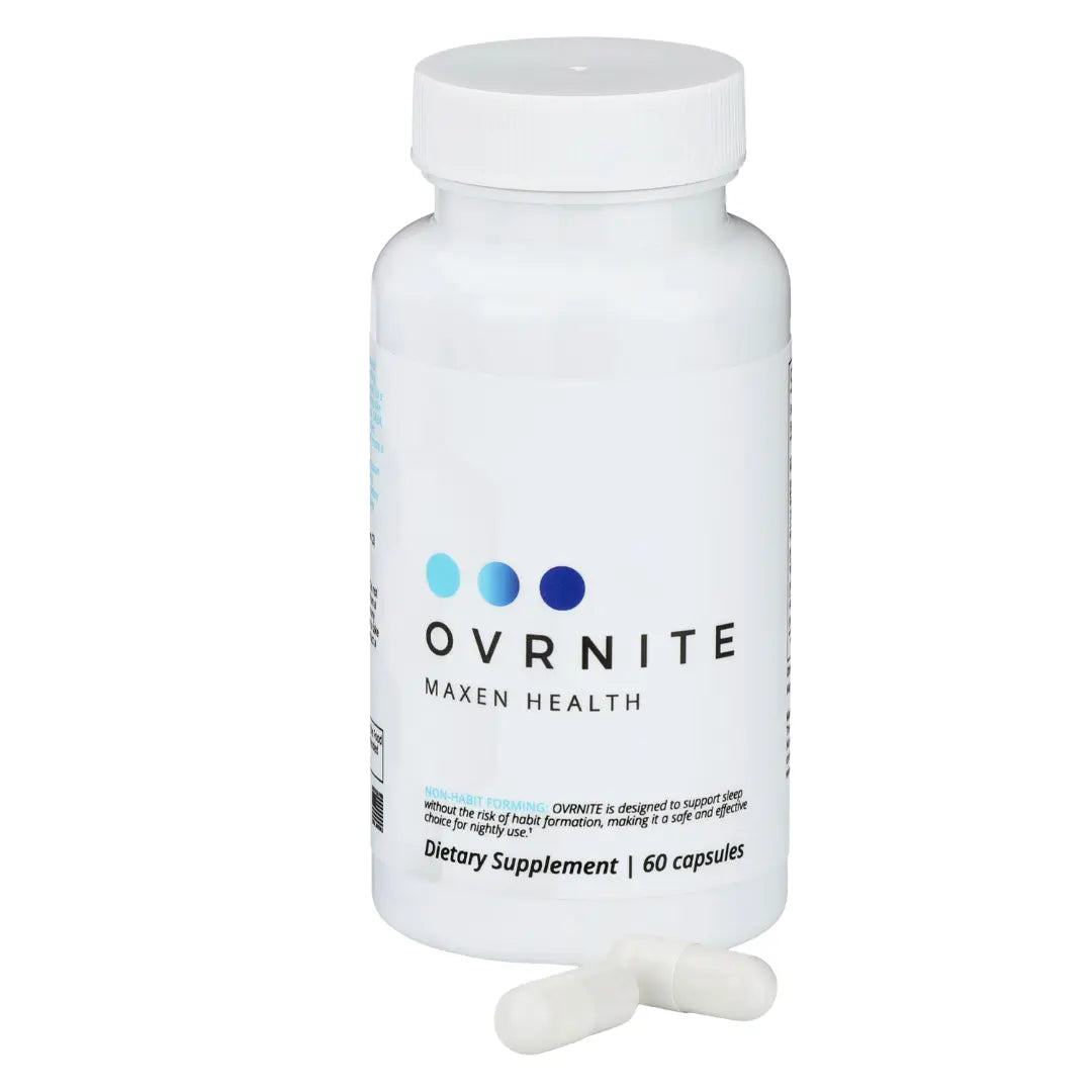Discover OVRNITE, your ultimate solution for deep, rejuvenating sleep and relaxation. This premium supplement combines natural ingredients including Magnesium Glycinate, GABA, L-Theanine, Valerian Root, and Hops to promote calmness and support a restful night's sleep. Whether you're winding down after a long day, managing sleep anxiety, or aiming for optimal rest, OVRNITE is your companion for achieving peaceful, quality sleep.